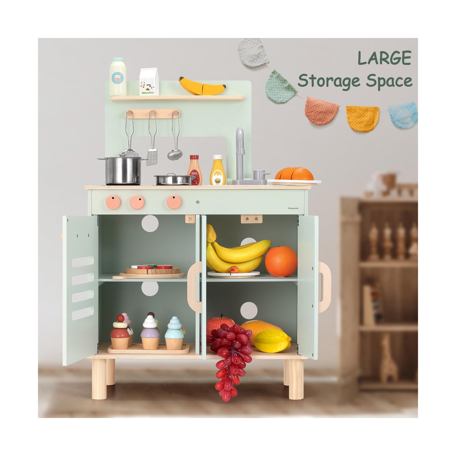 Wooden Play Kitchen Set, Mint Green Stove Sink with 5 Stainless S... Fast Ship