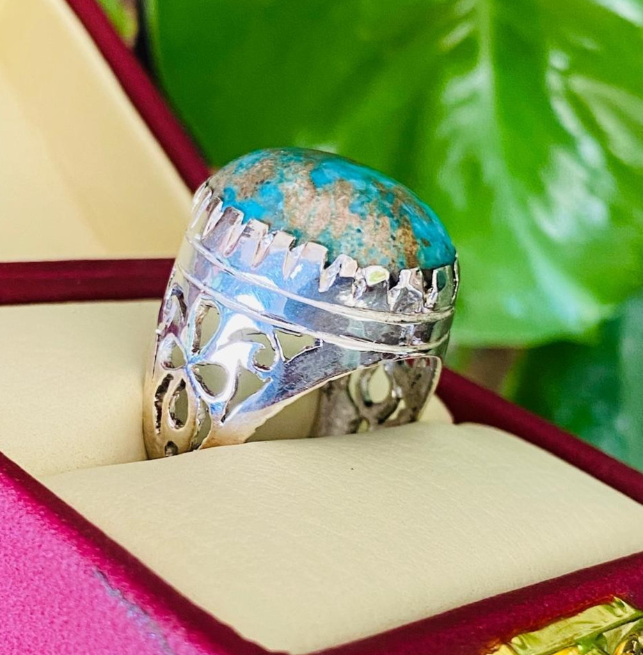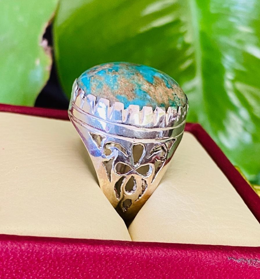 Big Shajari Feroza Stone Men Feroza Ring Giant Feroza Hussaini Turquoise Ring