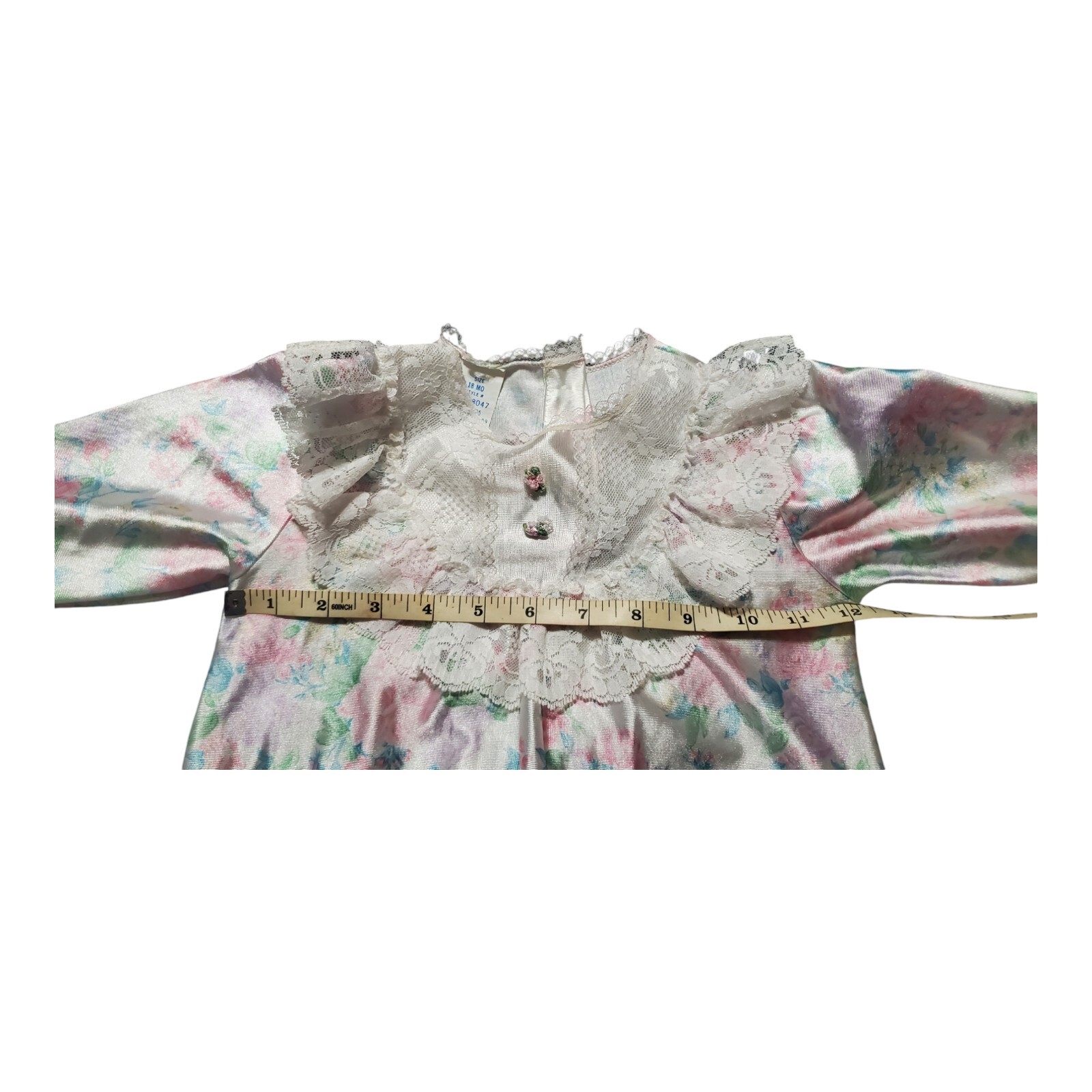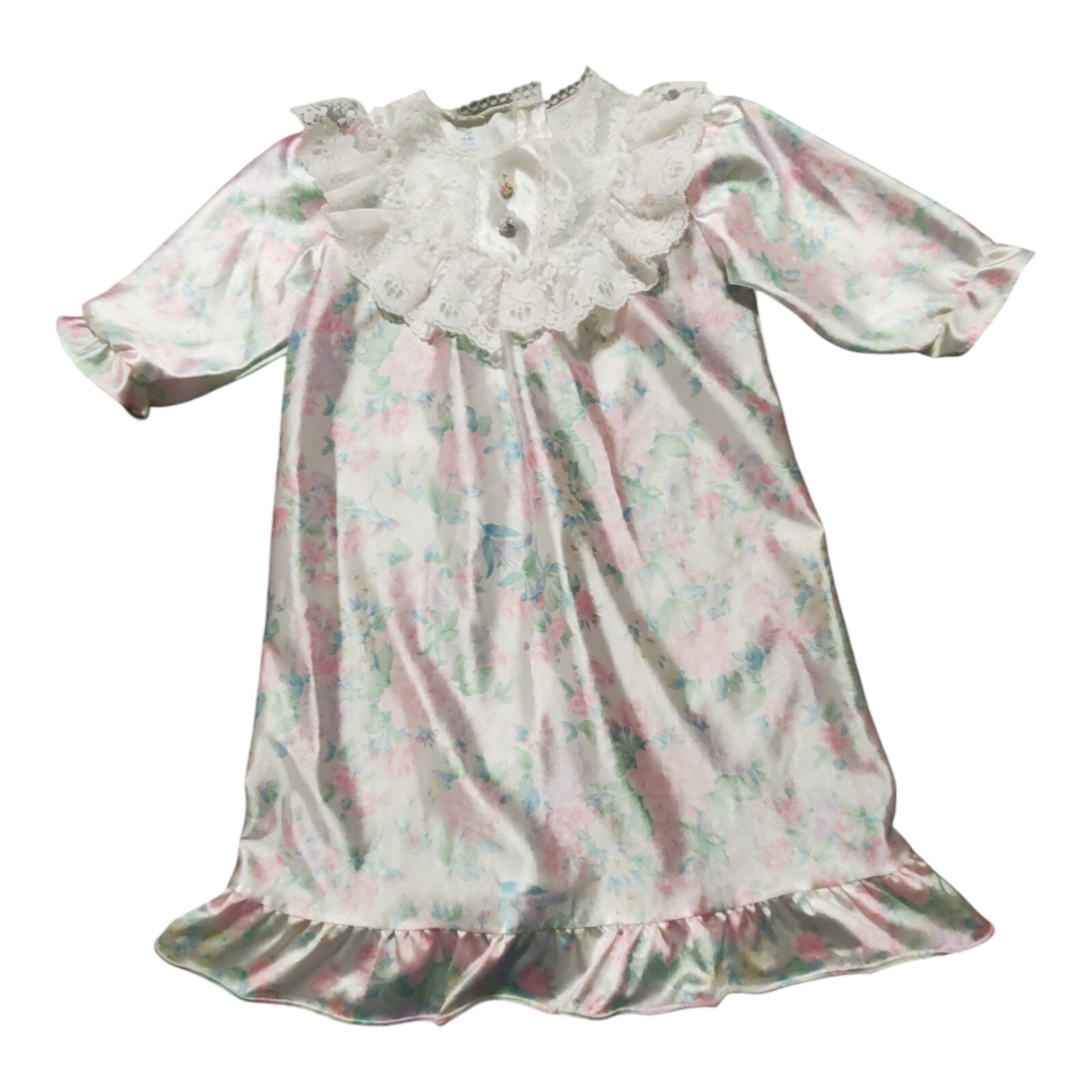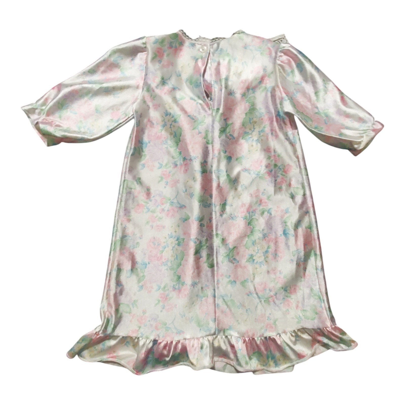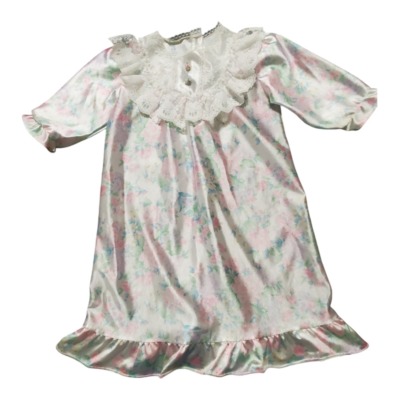 как выглядит Vtg Girls Nightgown Her Majesty JCPenney Ruffle Lace Silk Like Pajama 18 MO фото