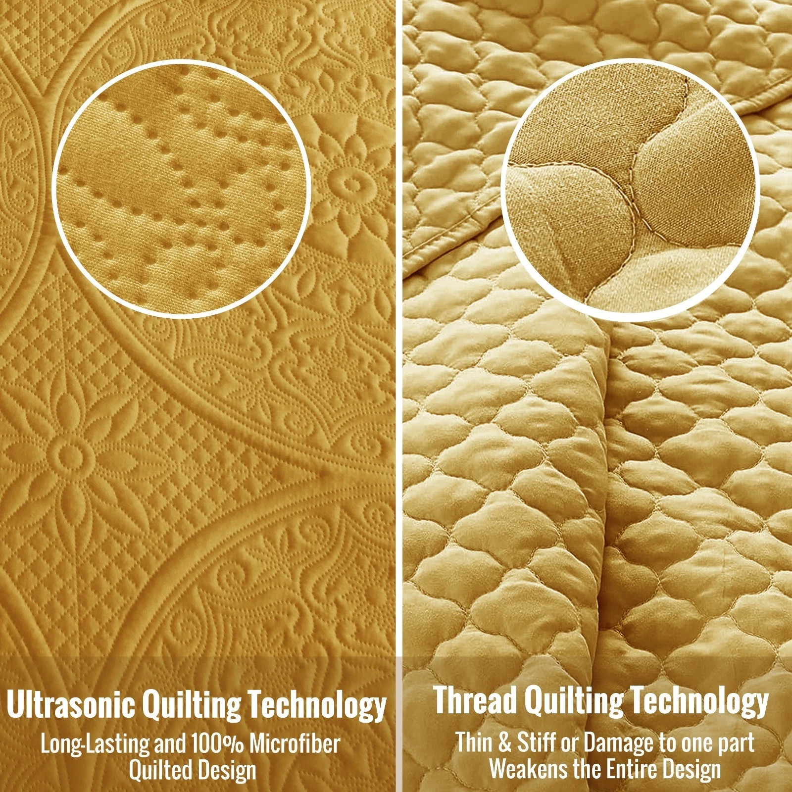 3 Piece Embossed Quilted Bedspread Reversible Queen King Size Coverlet Bed Throw