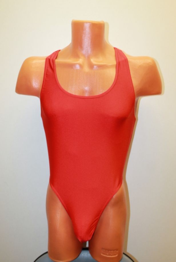 как выглядит Men Leotard 152-01 Racerback Bottom Half Closed Red Spandex Size L фото