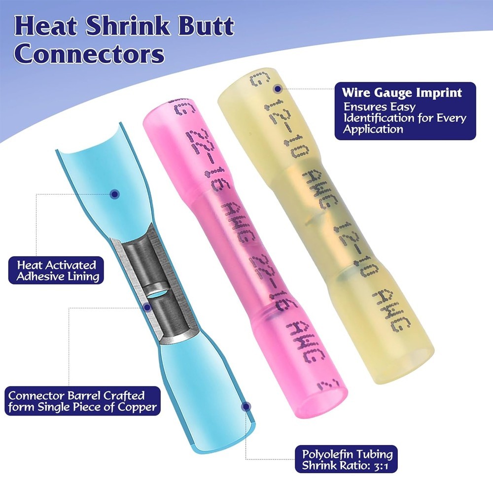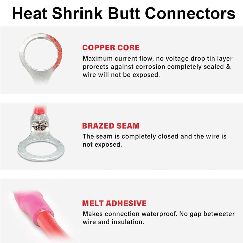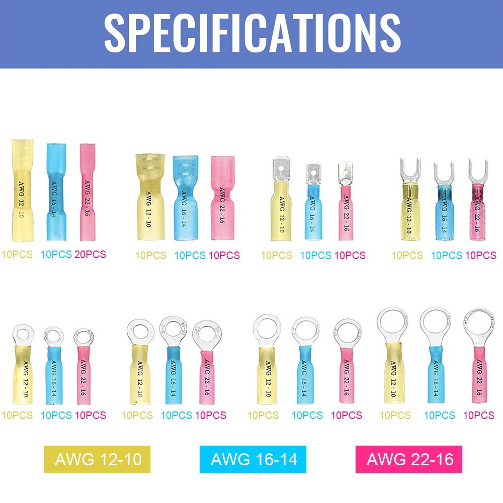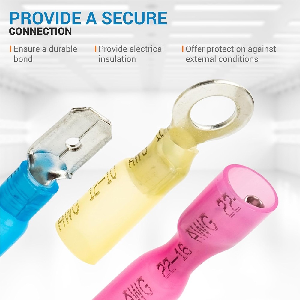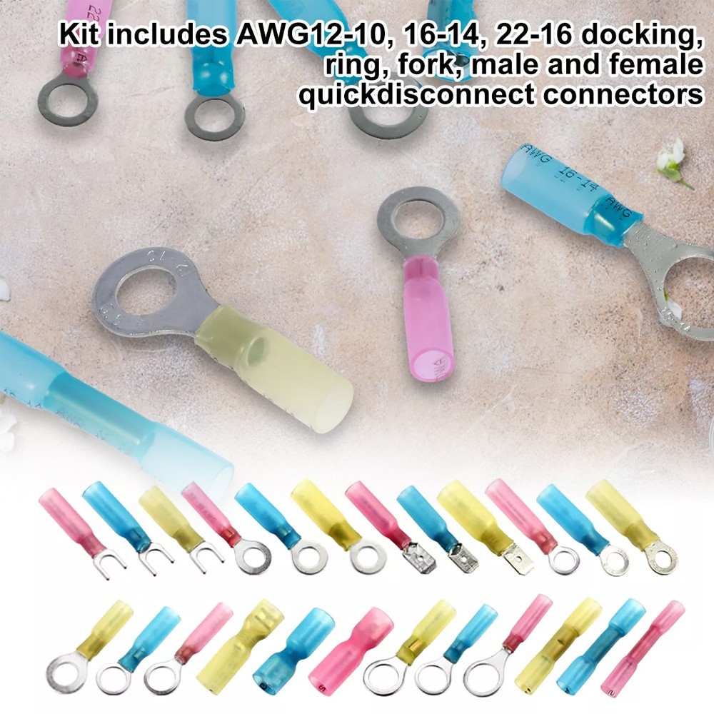 250Pcs Heat Shrink Electrical Wire Connectors Ring Spade Crimp Terminals Kit