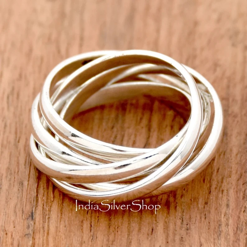 как выглядит 925 Sterling Silver Multi Band Ring, Handmade Interlocked Ring, Five, All Size фото