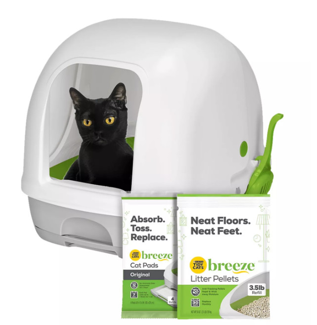 Cats Breeze Hooded Cat Litter Box System Starter Kit Litter Box, Pellets and Pad