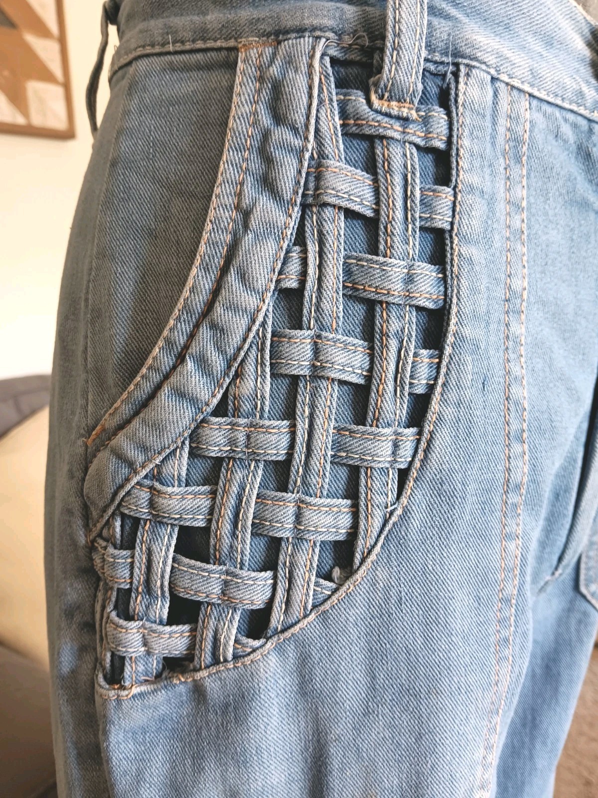 как выглядит VTG RARE 60 70s Bell Bottom Jeans Lattice Pockets Flared Hippie Boho Hong Kong фото