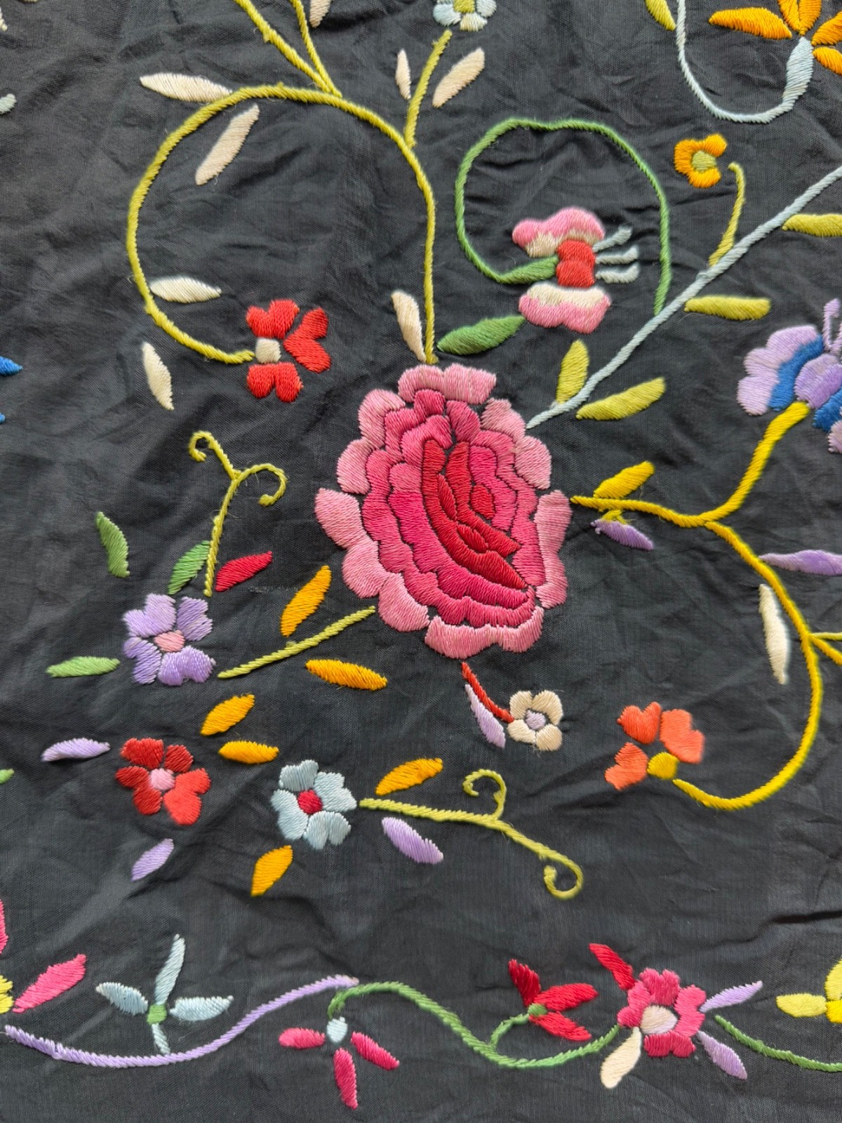 Vintage Beautiful Hand Silk Embroidered China Piano Scarf Shawl Fringed 76x69 Cm