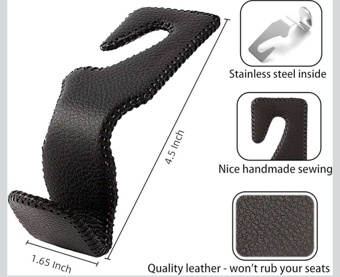 2 Leather Beige Car Headrest Hooks for Purses and Bags Vehicle Hanging Storage