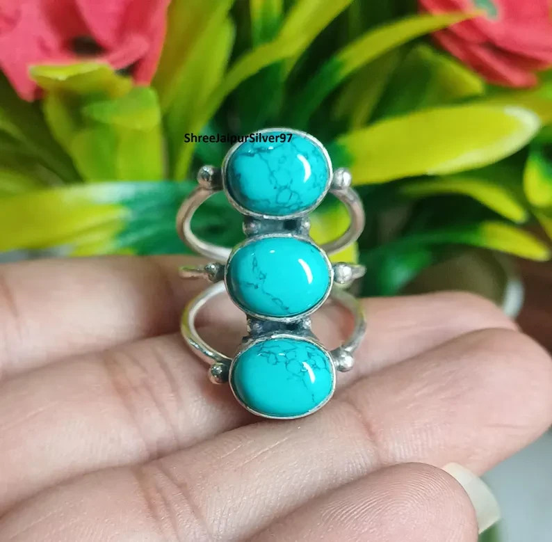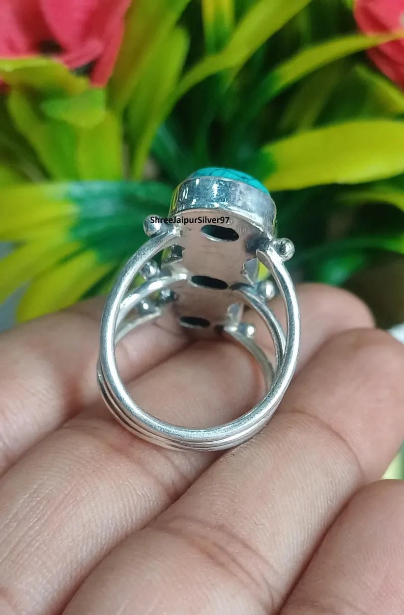 как выглядит Turquoise Gemstone Ring: Handmade 925 Sterling Silver Statement Ring All Size фото