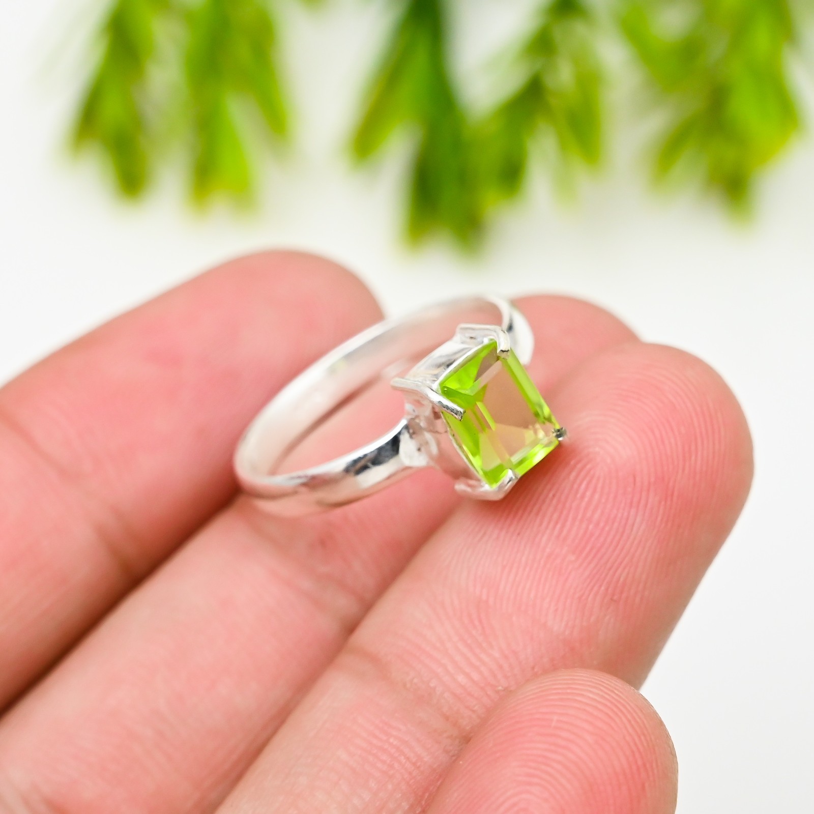 как выглядит Green Peridot Gemstone 925 Sterling Silver Ring Handmade Jewelry Ring For Gift фото