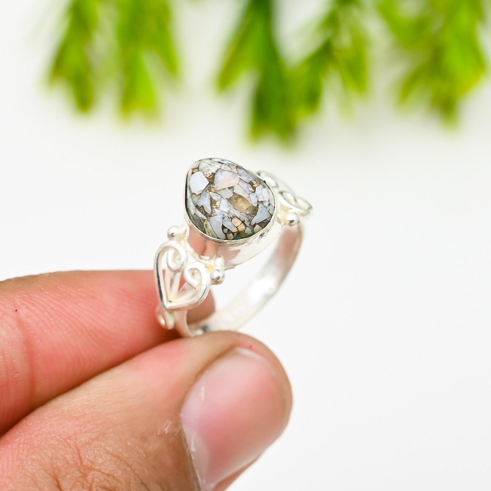 как выглядит Pink Opal Turquoise Gemstone 925 Sterling Silver Ring Handmade Jewelry Ring Gift фото