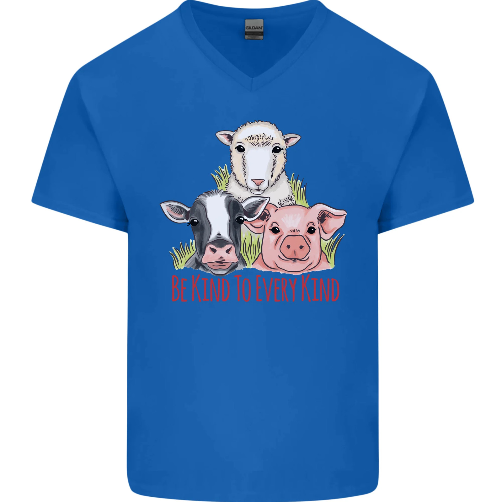 Vegan Kind to Ever kind Vegetarian Mens V-Neck Cotton T-Shirt
