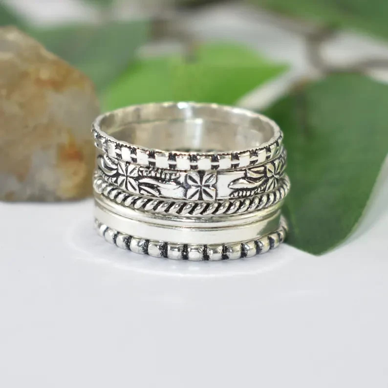 Set Of 6 Sterling Silvers, Pure Silver Rings, Assorted Pattern Rings, All Size
