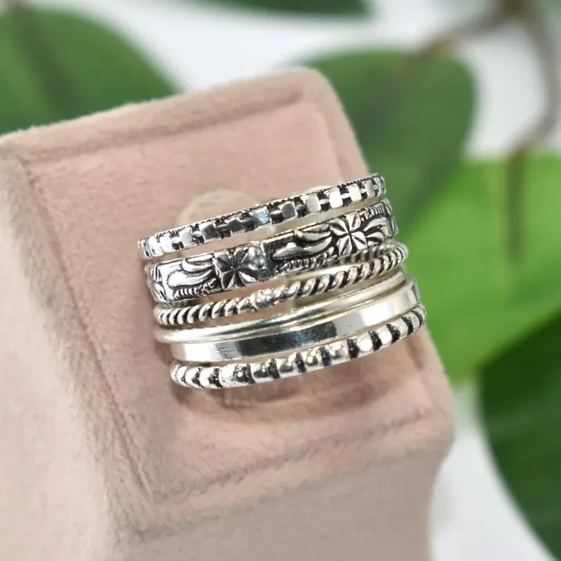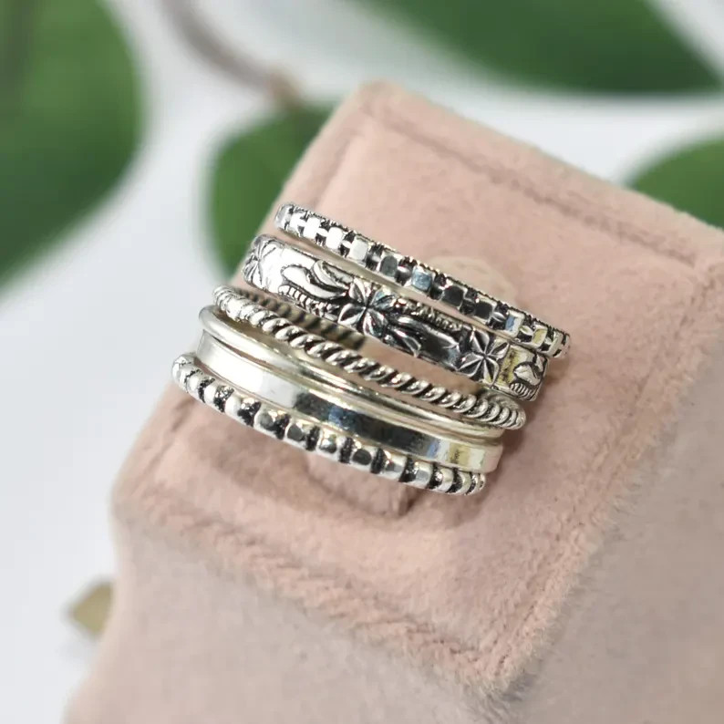 как выглядит Set Of 6 Sterling Silvers, Pure Silver Rings, Assorted Pattern Rings, All Size фото