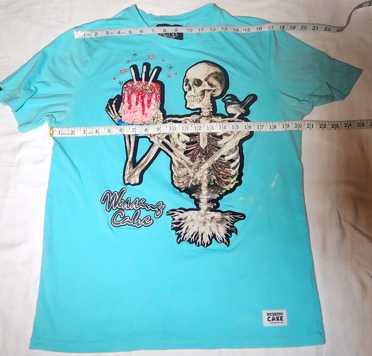 как выглядит Wedding Cake Wake Bake Cake Skeleton Graphic Print BLUE T- Shirt Mens Size XL фото