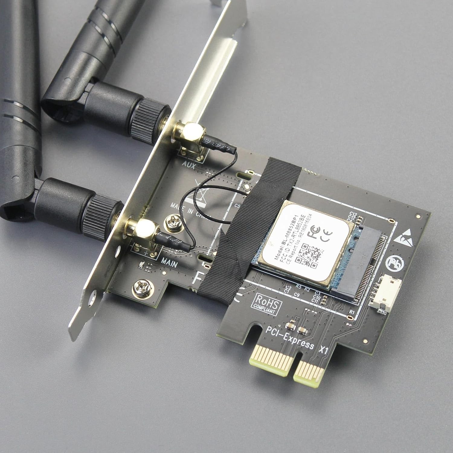 как выглядит WA01 M.2 E Key to PCIe X1 WiFi Bluetooth Adapter for M.2 WiFi 4/5/6/6e/7/Coral T фото