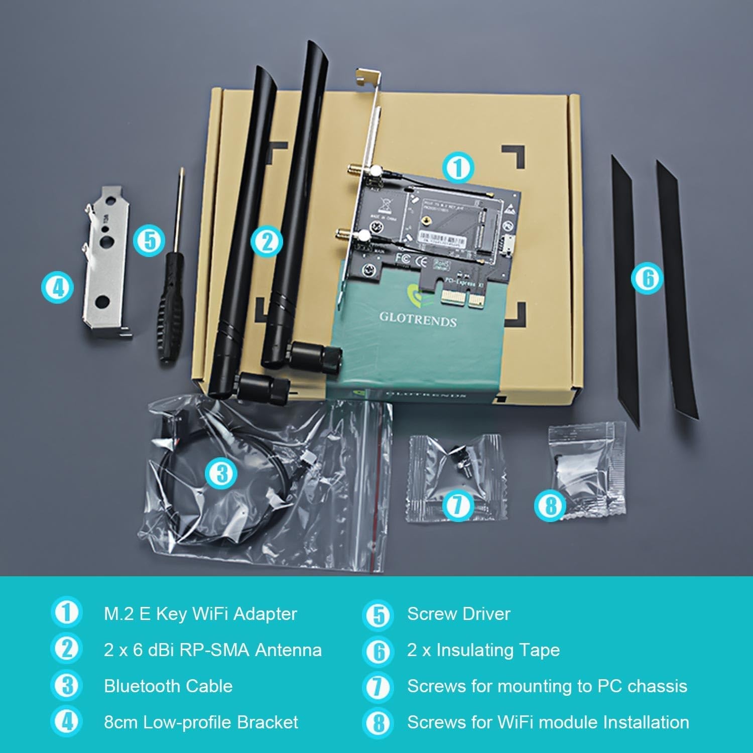 WA01 M.2 E Key to PCIe X1 WiFi Bluetooth Adapter for M.2 WiFi 4/5/6/6e/7/Coral T