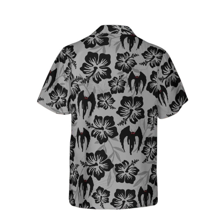 как выглядит Mothman Hawaiian Shirt: Cryptid Black Red Button-Down фото