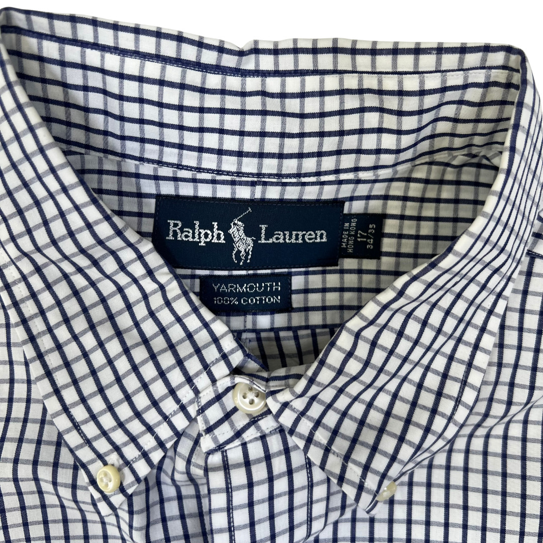 Ralph Lauren Shirt Mens 17 34/35 Yarmouth Long Sleeve Navy Blue White Cotton