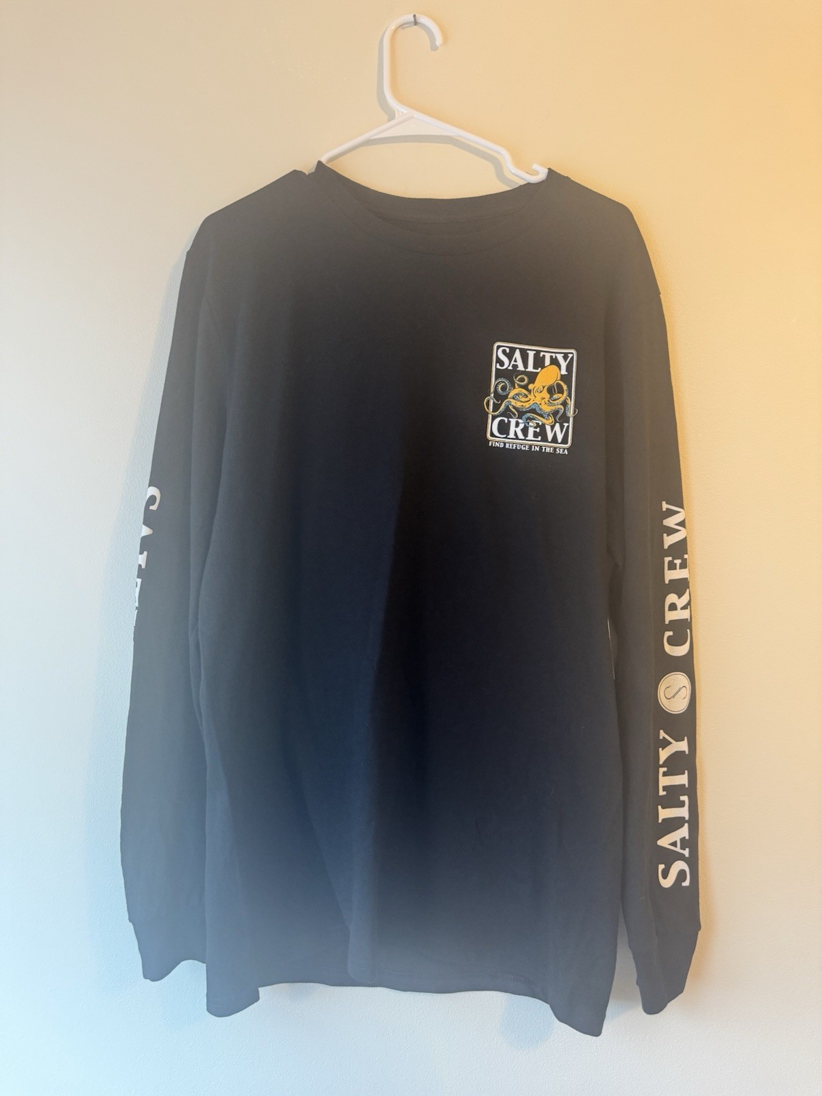 как выглядит Salty Crew Boys Ink Slinger LS Surf Shirt - Black- New Med фото