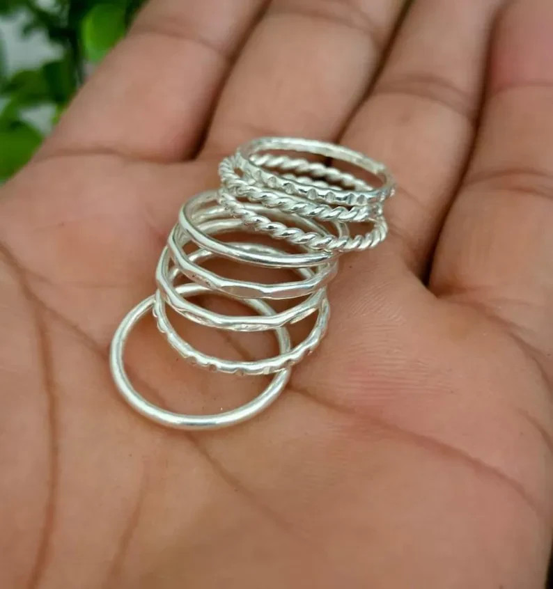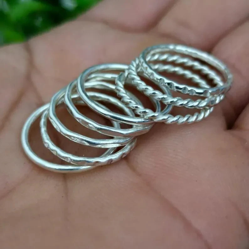 как выглядит Stackable Sterling Silver Rings Set: Twisted, Beaded, Floral - 8 Piece All Size фото