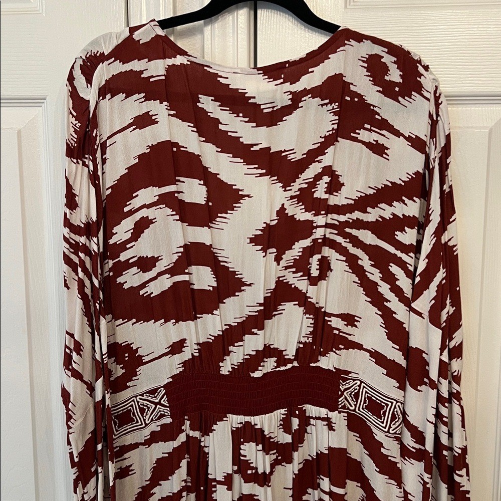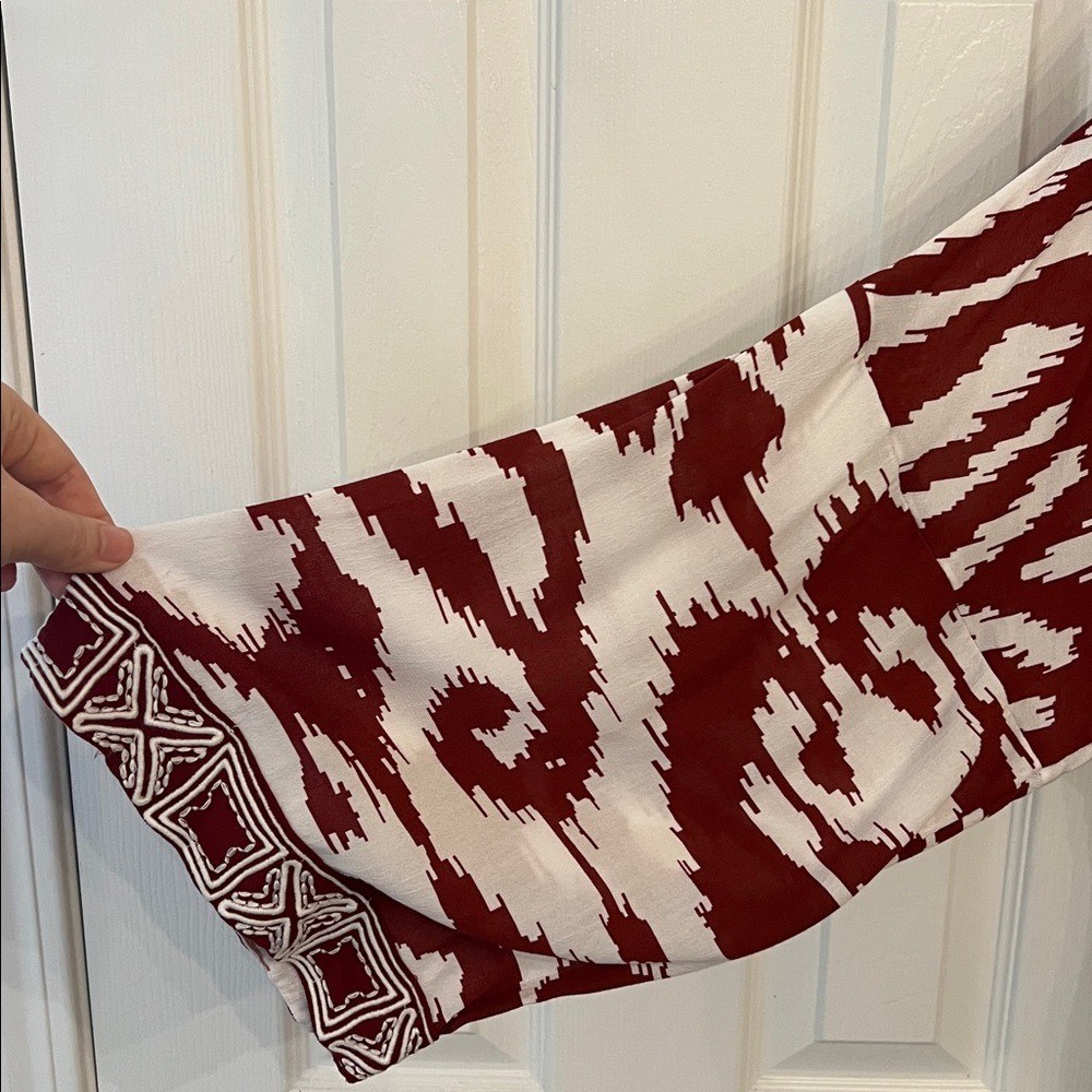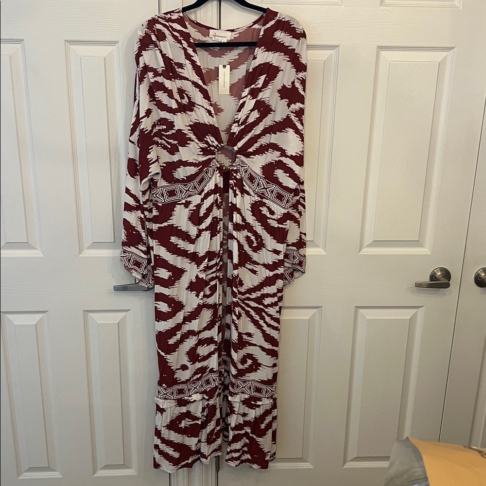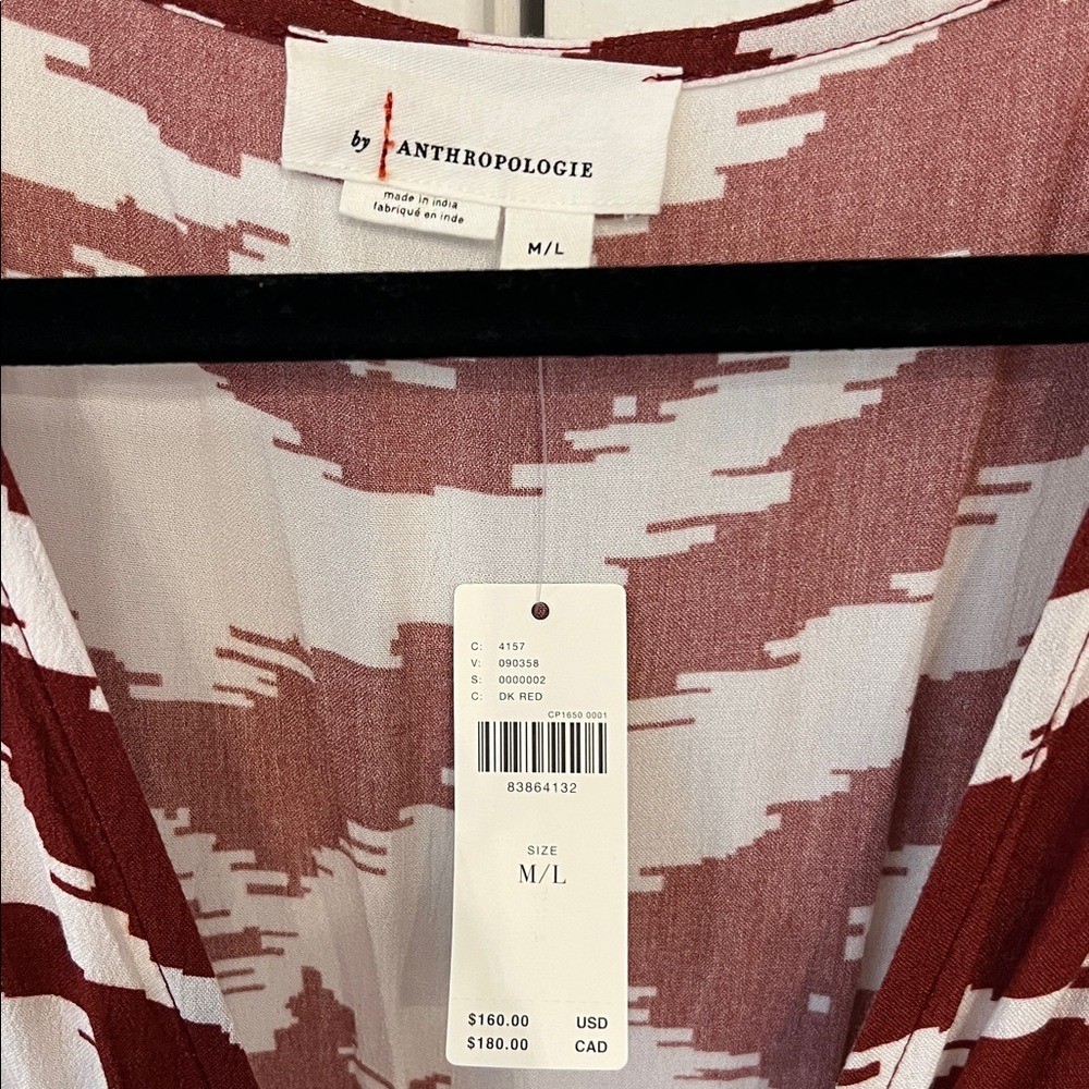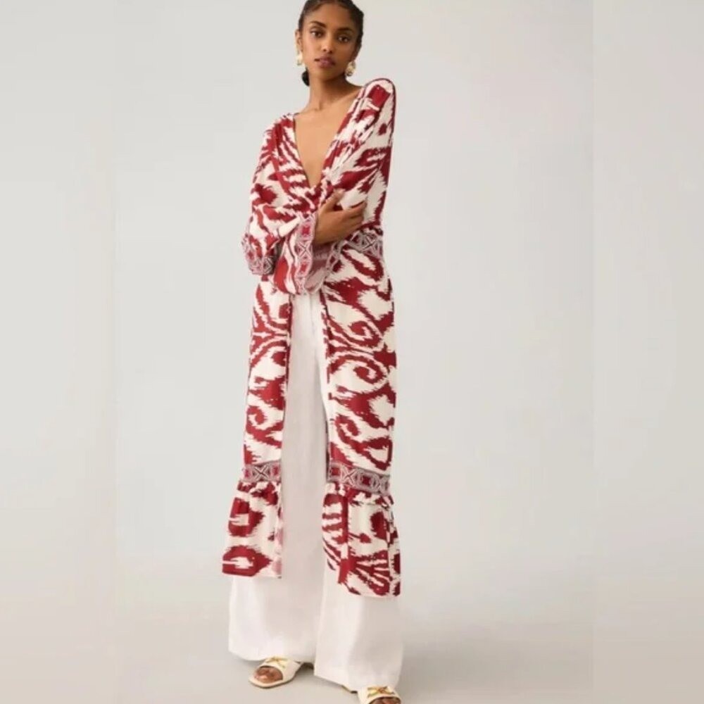 как выглядит ANTHROPOLOGIE Printed Front Ring Kaftan in Red/White Sz M/L - NWT фото