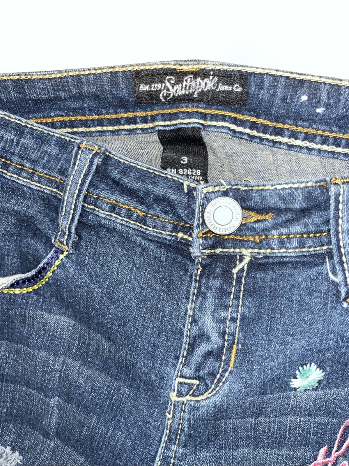South Pole Jeans Juniors 3 X25 Dark Wash Heart Embroidered Mid Rise Y2K Vintage