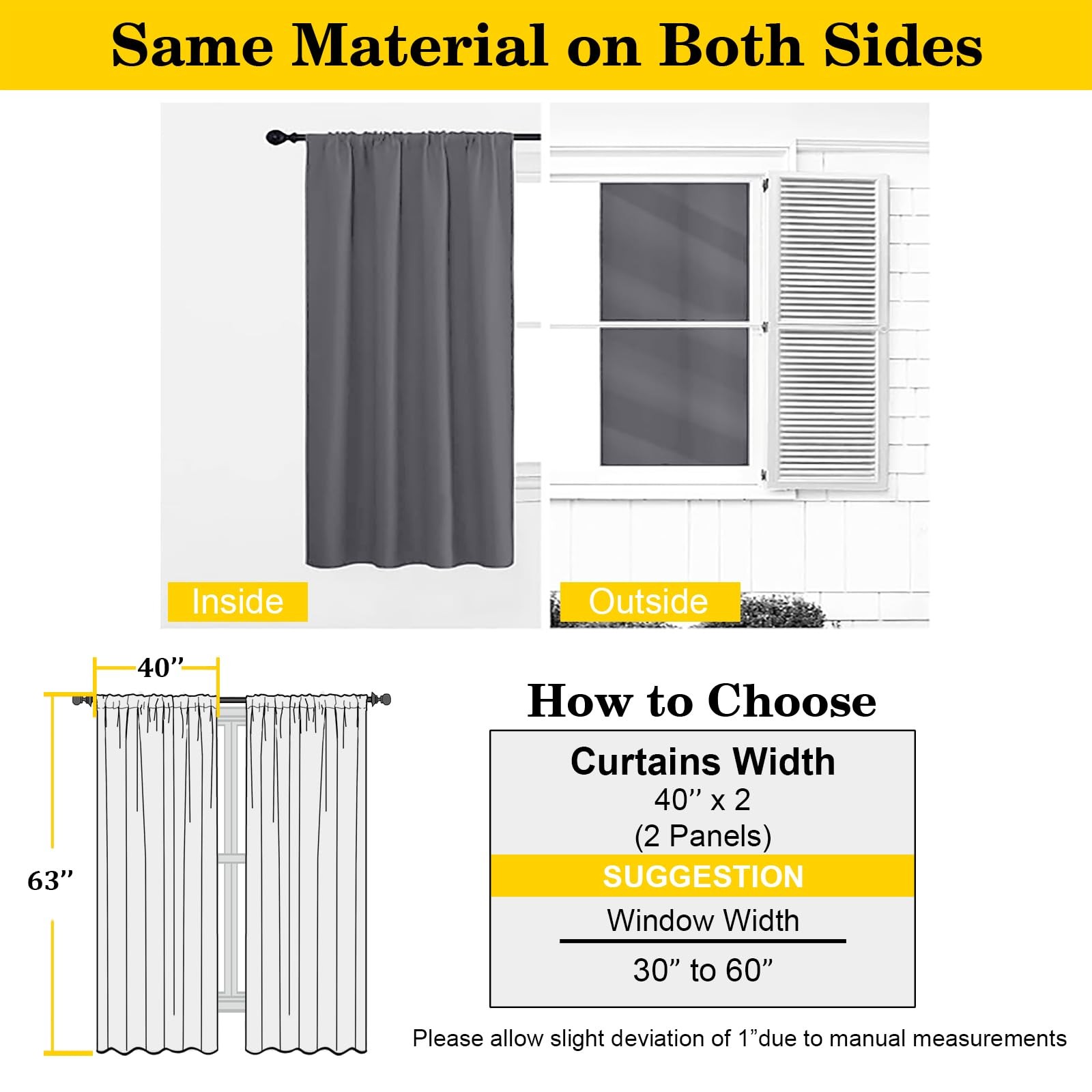 Blackout Curtains for Bedroom Living Room 63 Inch 40W x 63L Pack of 2 Grey