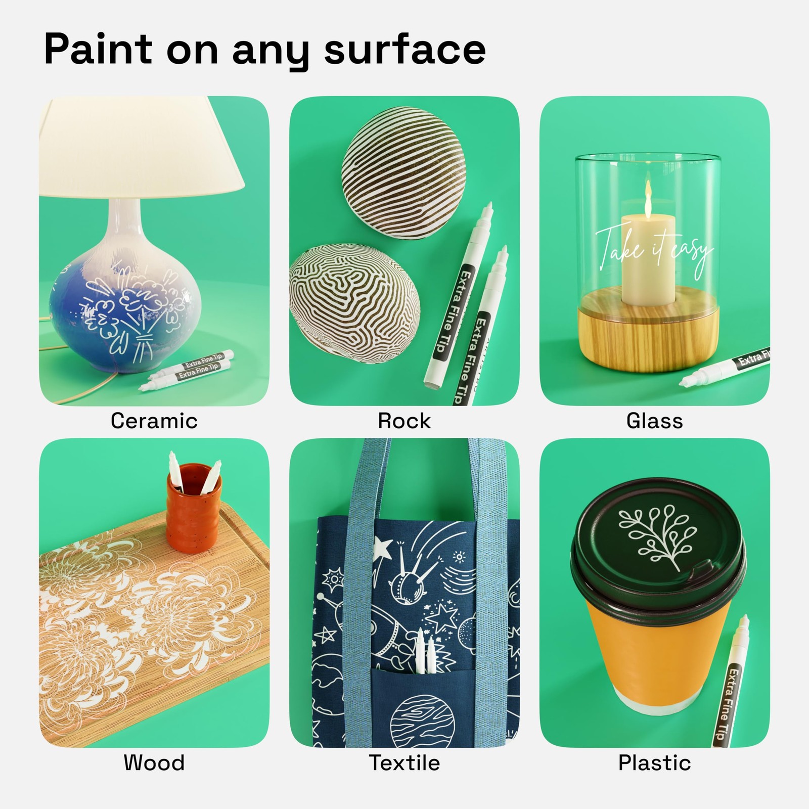 • 2 White Acrylic Paint Markers - 0.7mm Extra Fine-Tip Paint Pens - Perfect for...