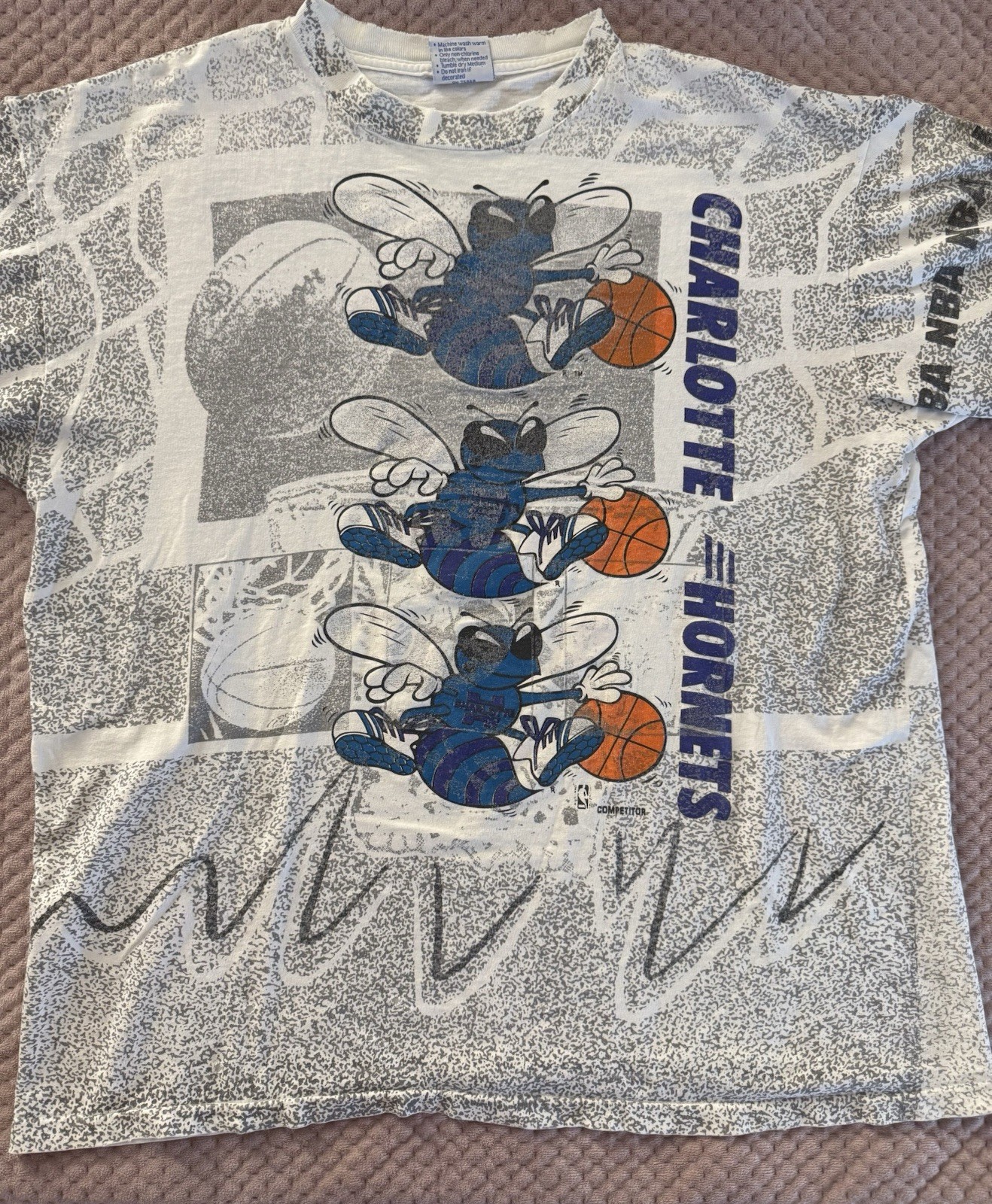 как выглядит Vintage 90s Charlotte Hornets NBA AOP T-Shirt Single Stitch Size XL фото