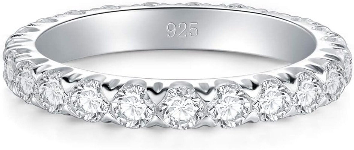 как выглядит Gorgeous 3mm Sterling Silver Cubic Zirconia Band - Hypoallergenic Women