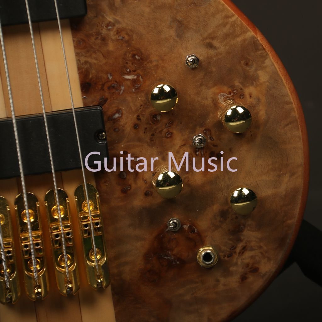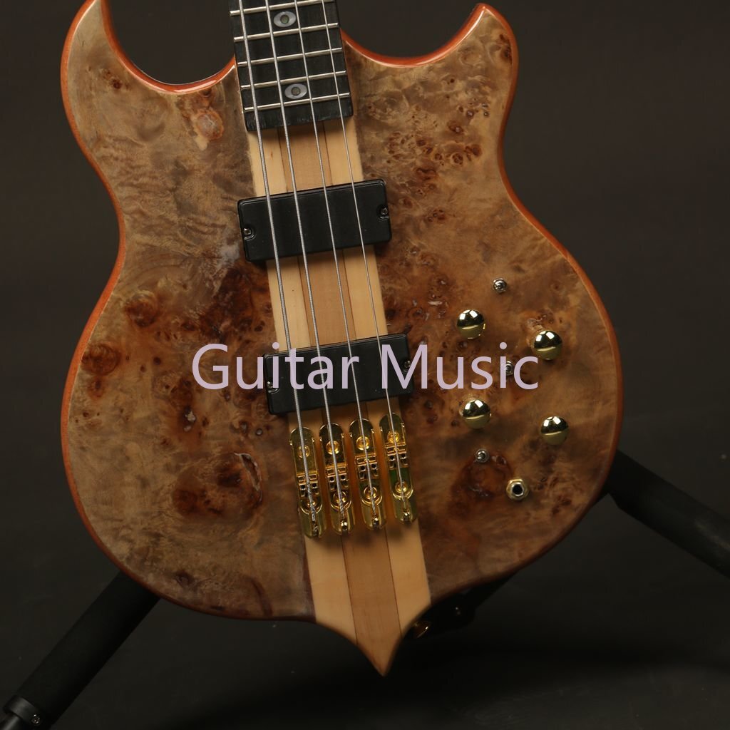 Custom Burl Maple Top 4 String Electric Bass Gold Hardware Neck Thru Body