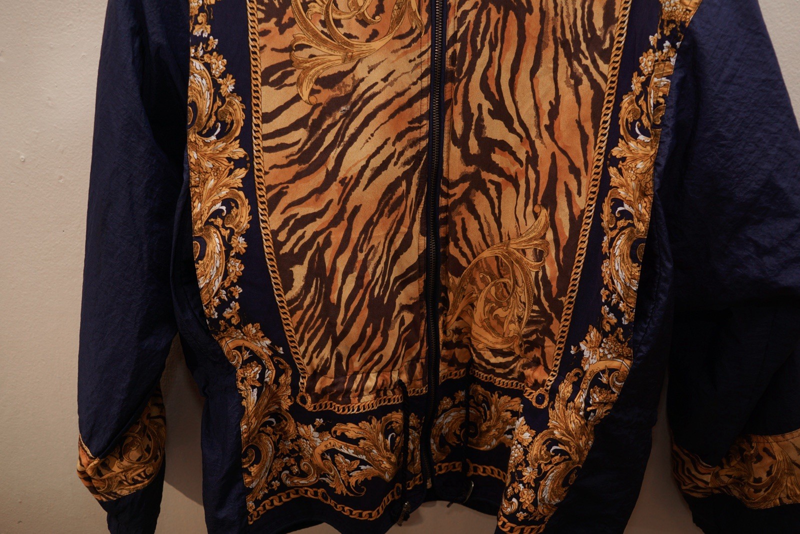 Vintage 90 s East West Jacket Windbreaker Blue Gold Tiger Yellow Women s Size M