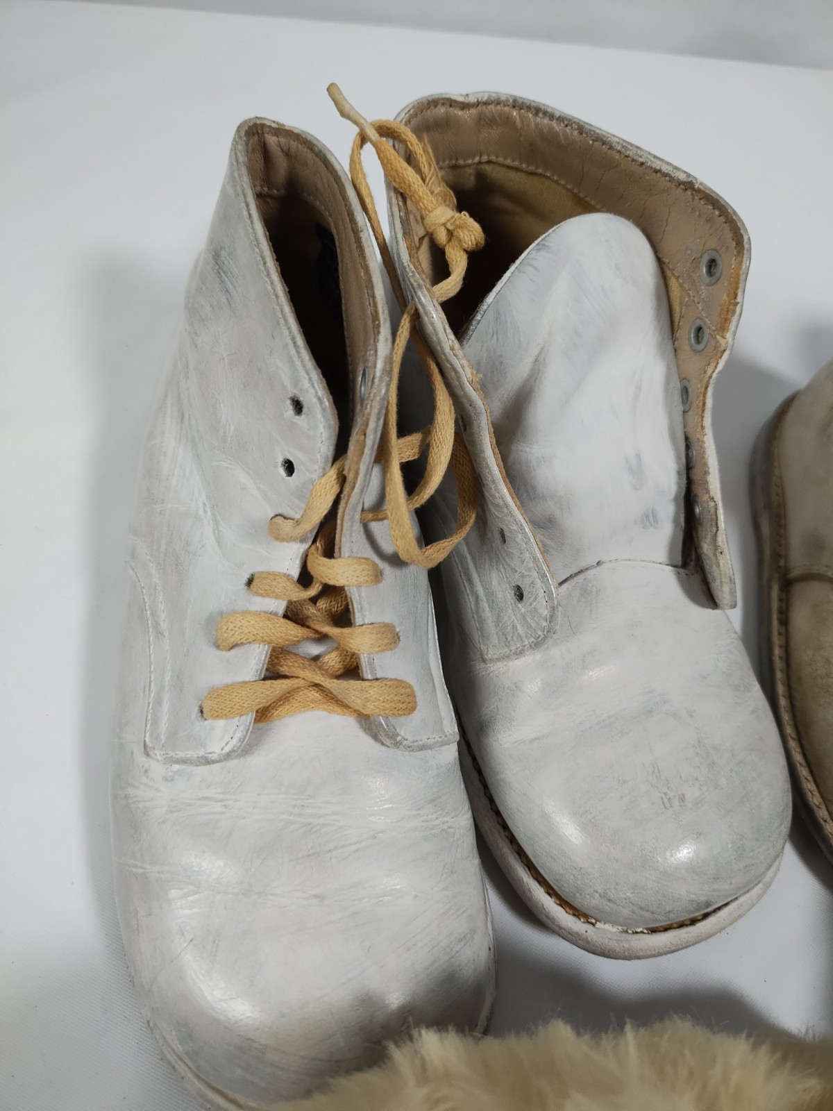 как выглядит Vintage White Leather Lace Up Antique Baby Shoes фото