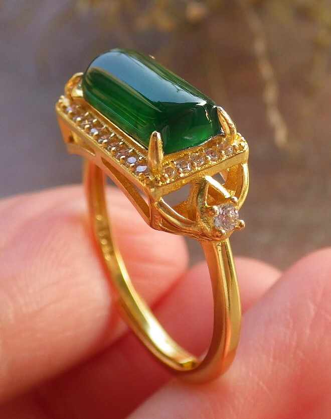 как выглядит Certified Green silver 925 100 A JADE Jadeite Rectangle RING USA 6.5  890632 фото