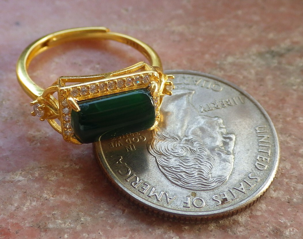 Certified Green silver 925 100 A JADE Jadeite Rectangle RING USA 6.5 890632
