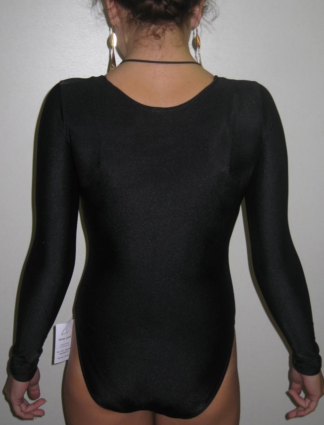 как выглядит Women Gymnastics Leotard 101-00 Long Sleeve Bottom Closed Black Spandex Size L фото