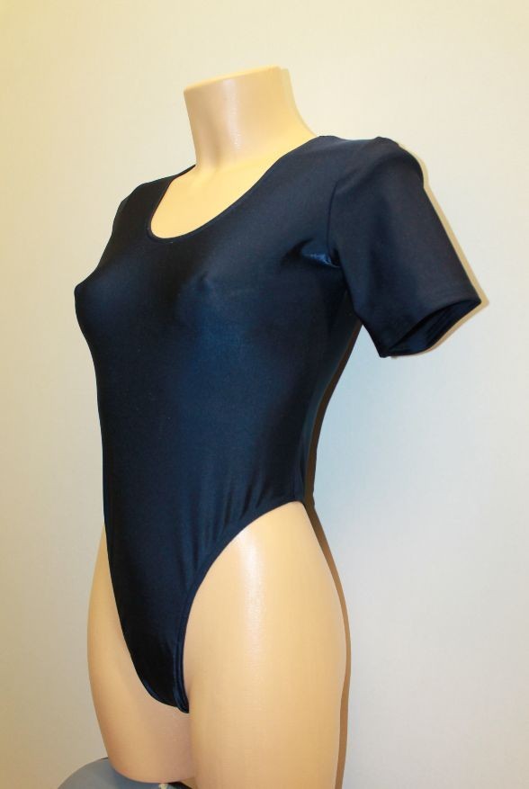 как выглядит Women Thong Sport Leotard 105-03 Short Sleeve Dark Blue Spandex Size L фото