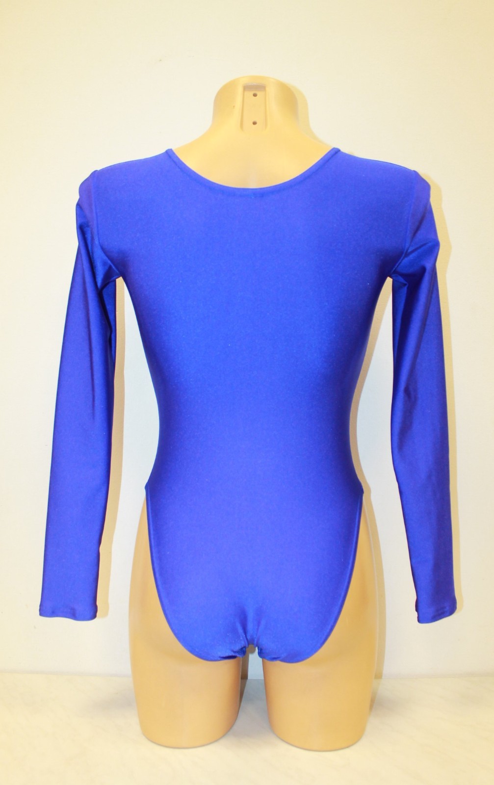 Women Leotard 101-04 Long Sleeve Bottom Half Closed Royal Blue Spandex Size L