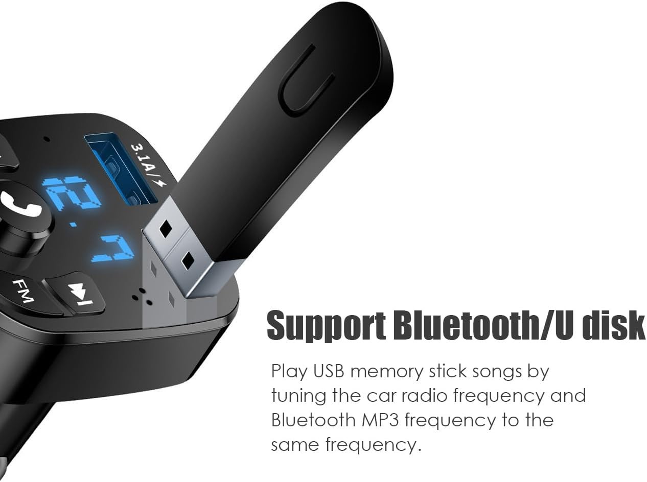Wireless Adapter 2USB PD Charger AUX Hands-Free Bluetooth 5.0 Car FM Transmitter