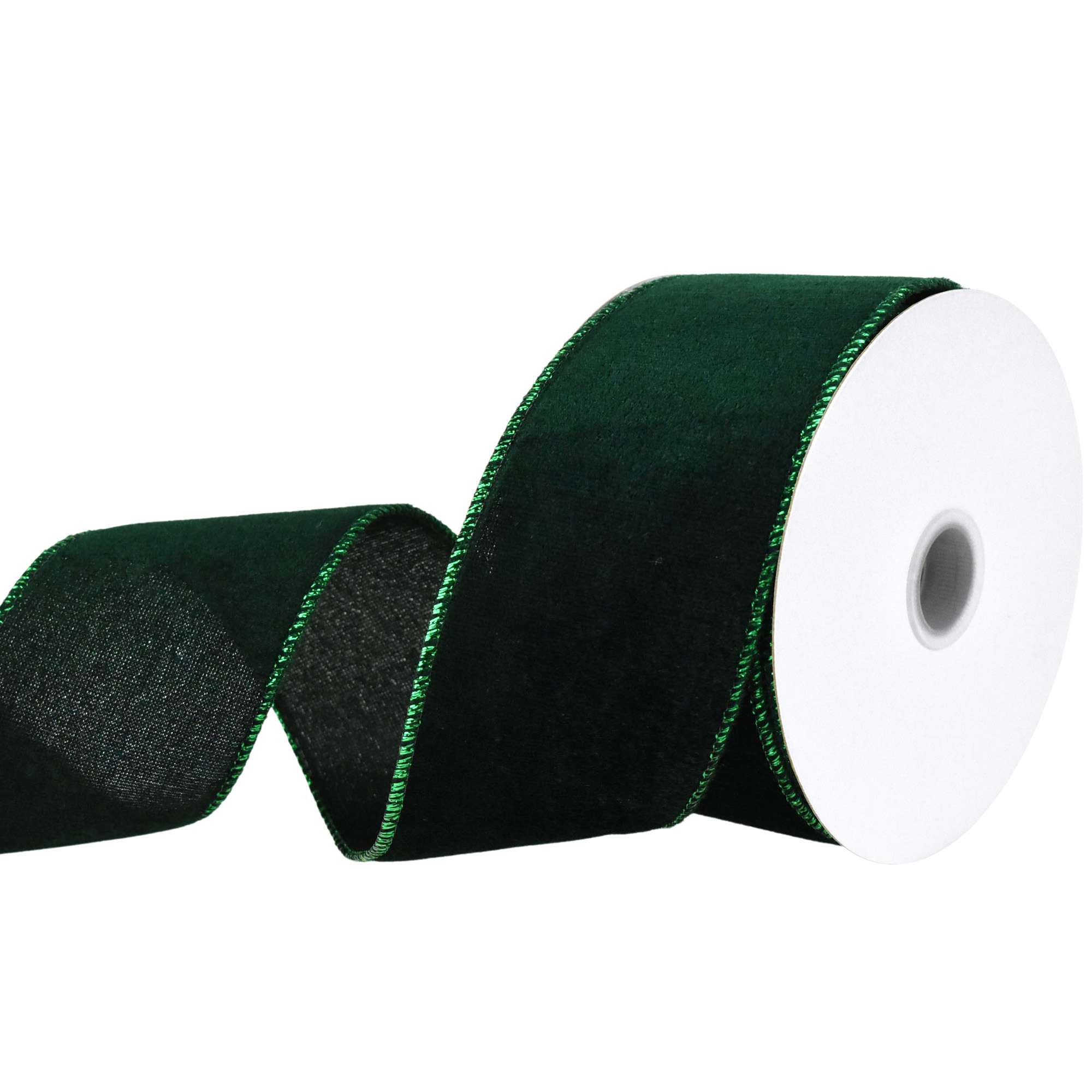 Christmas Lush Velvet Metallic Edge Wired Ribbon, 10-yard