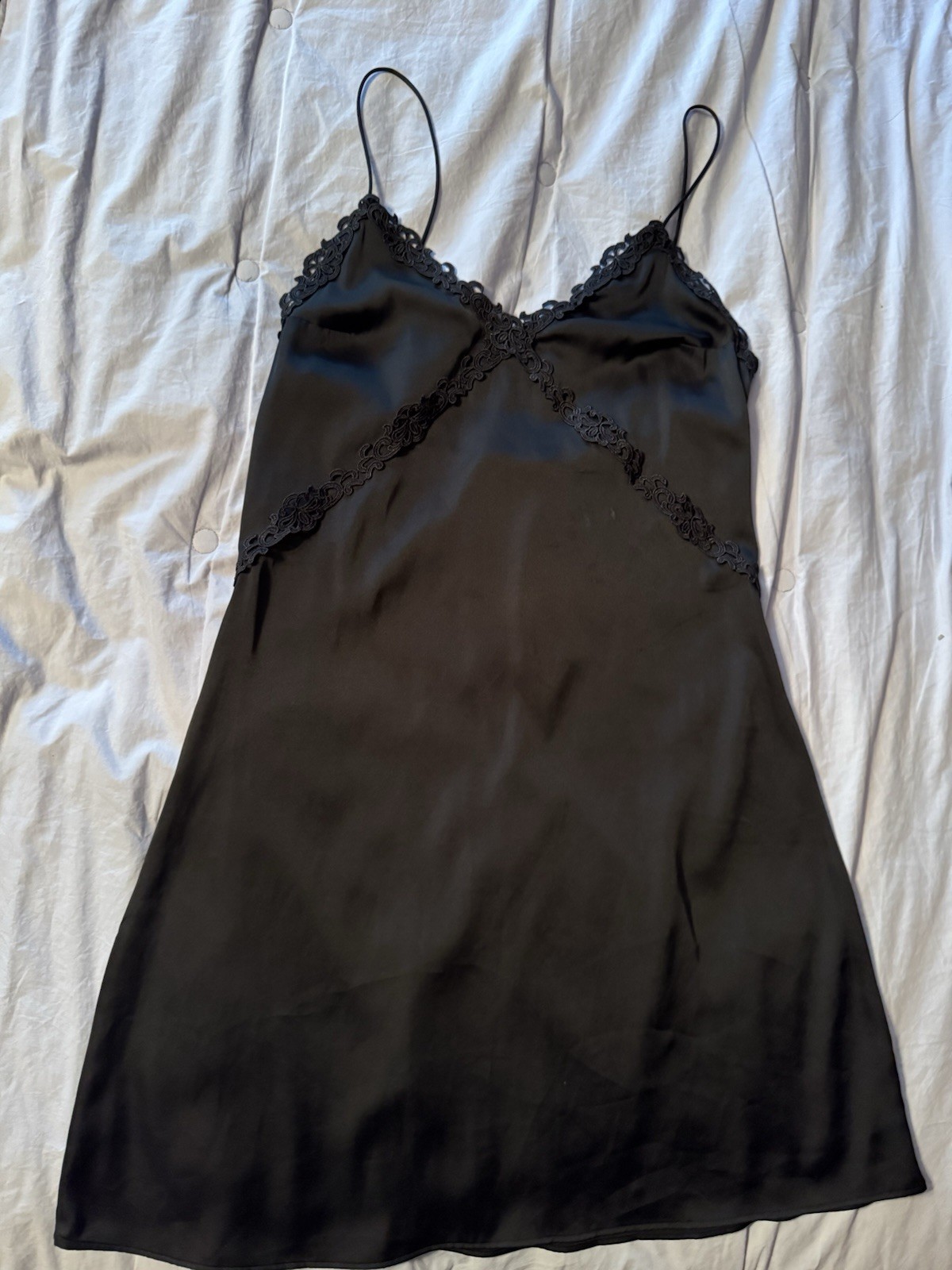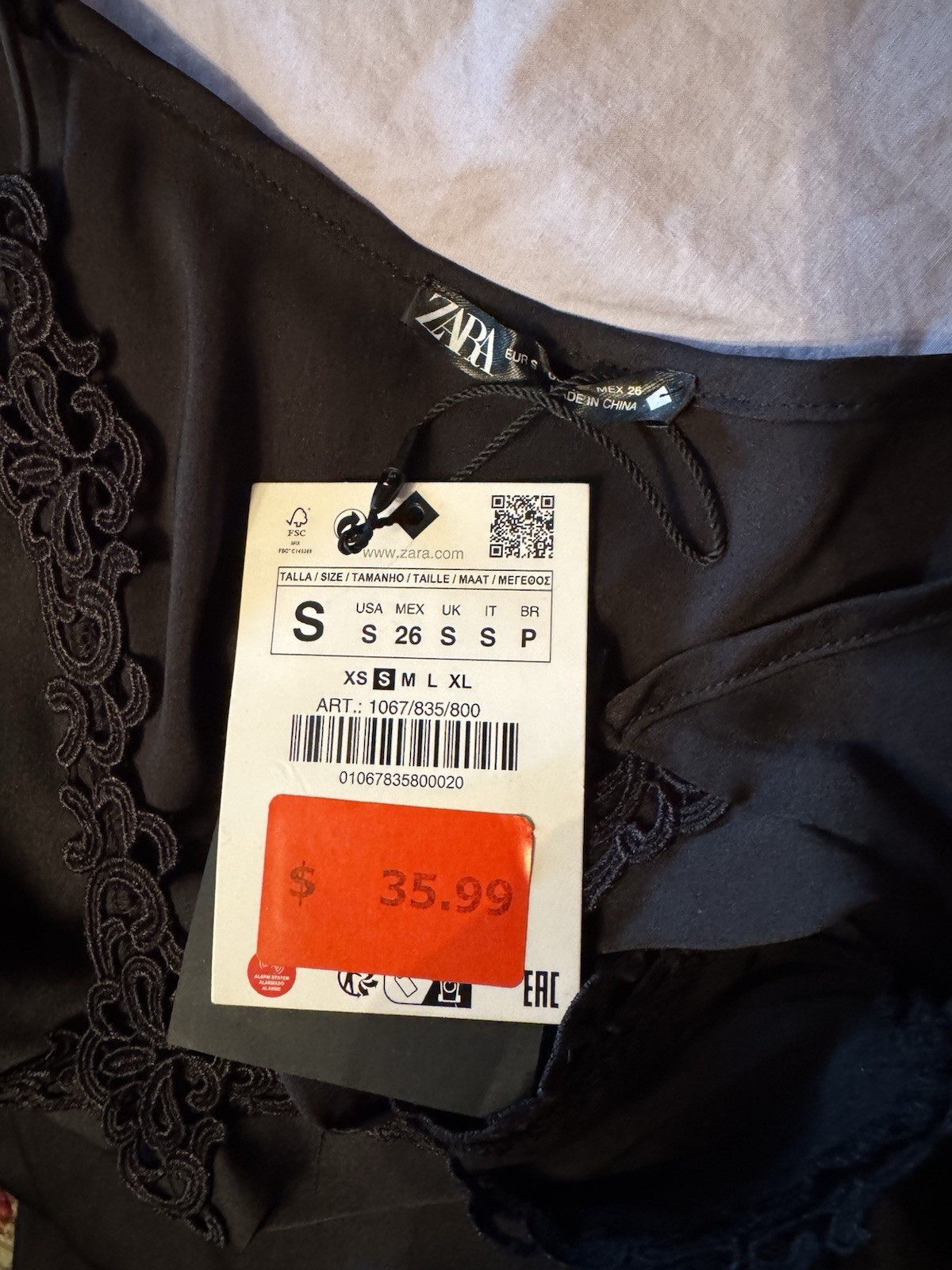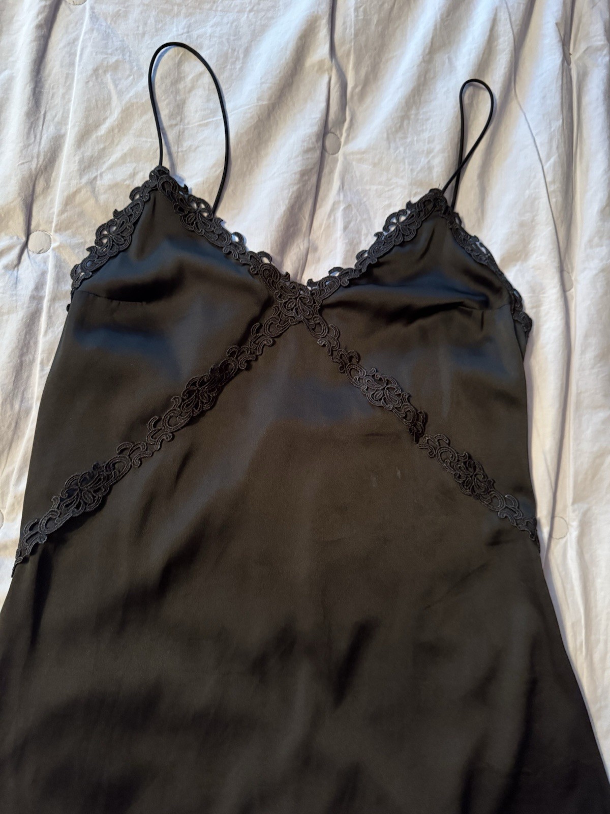 как выглядит ZARA Black Satin Slip Dress with Lace Trim Size S NWT фото