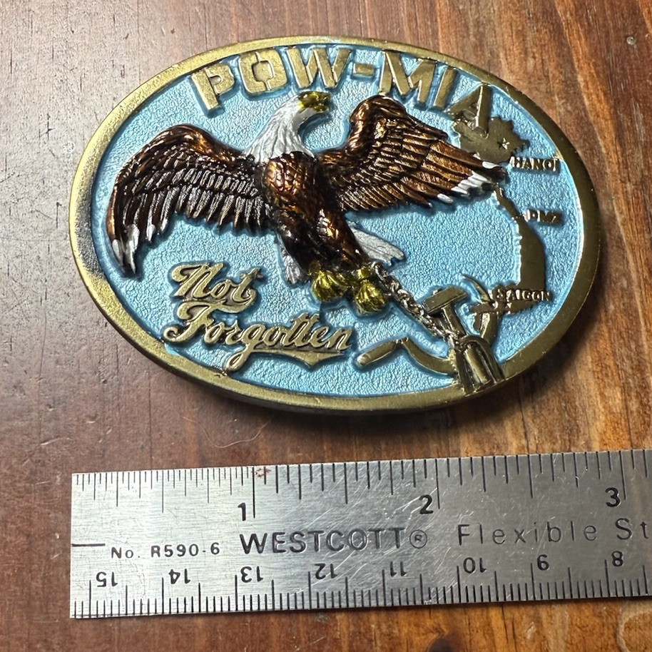 • Vintage POW MIA Not Forgotten Belt Buckle The Great American Buckle Co USA