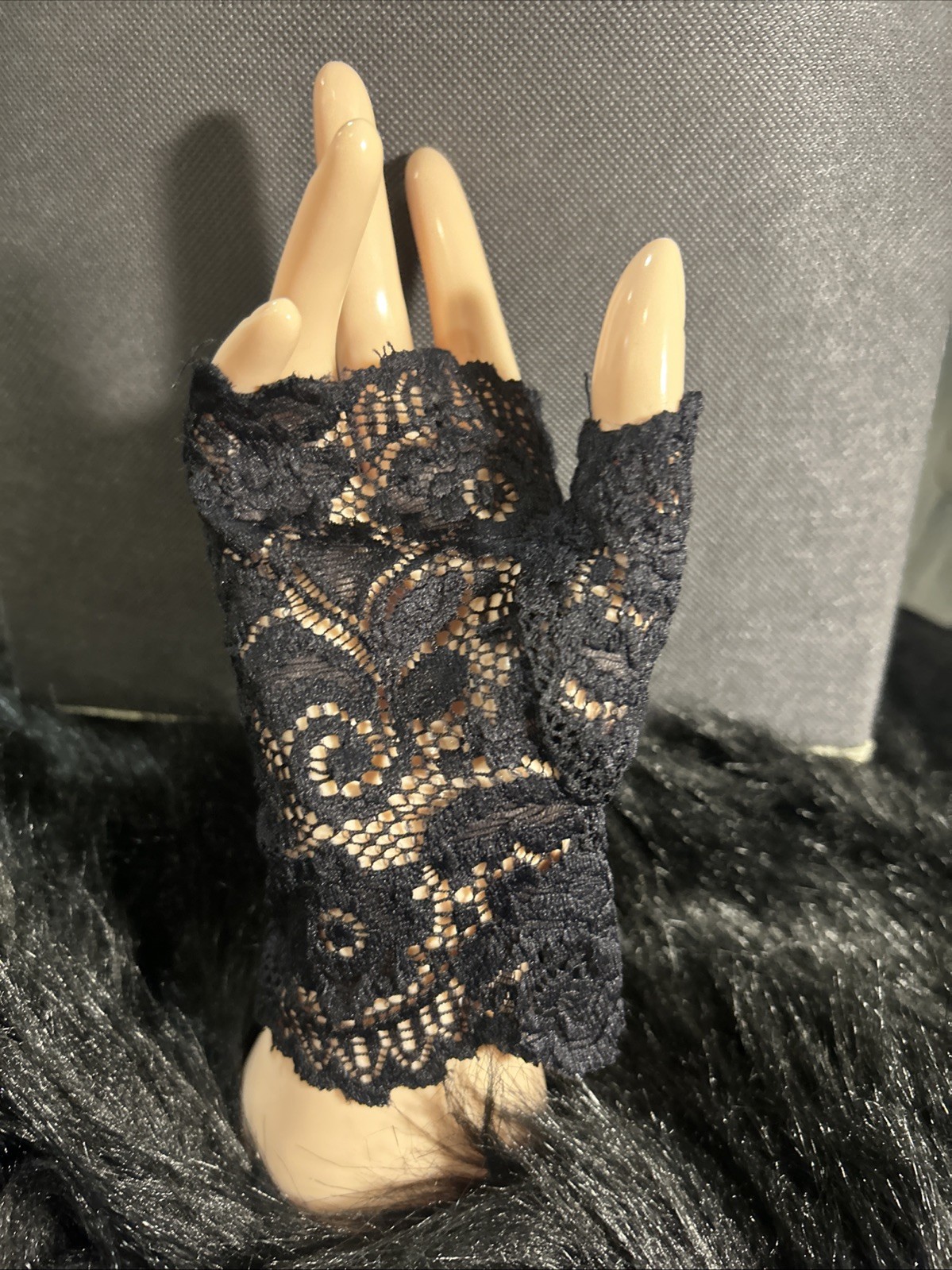 True Vintage Soft Black Lace Fingerless Gloves 80 s From My Daughter Sz S/M