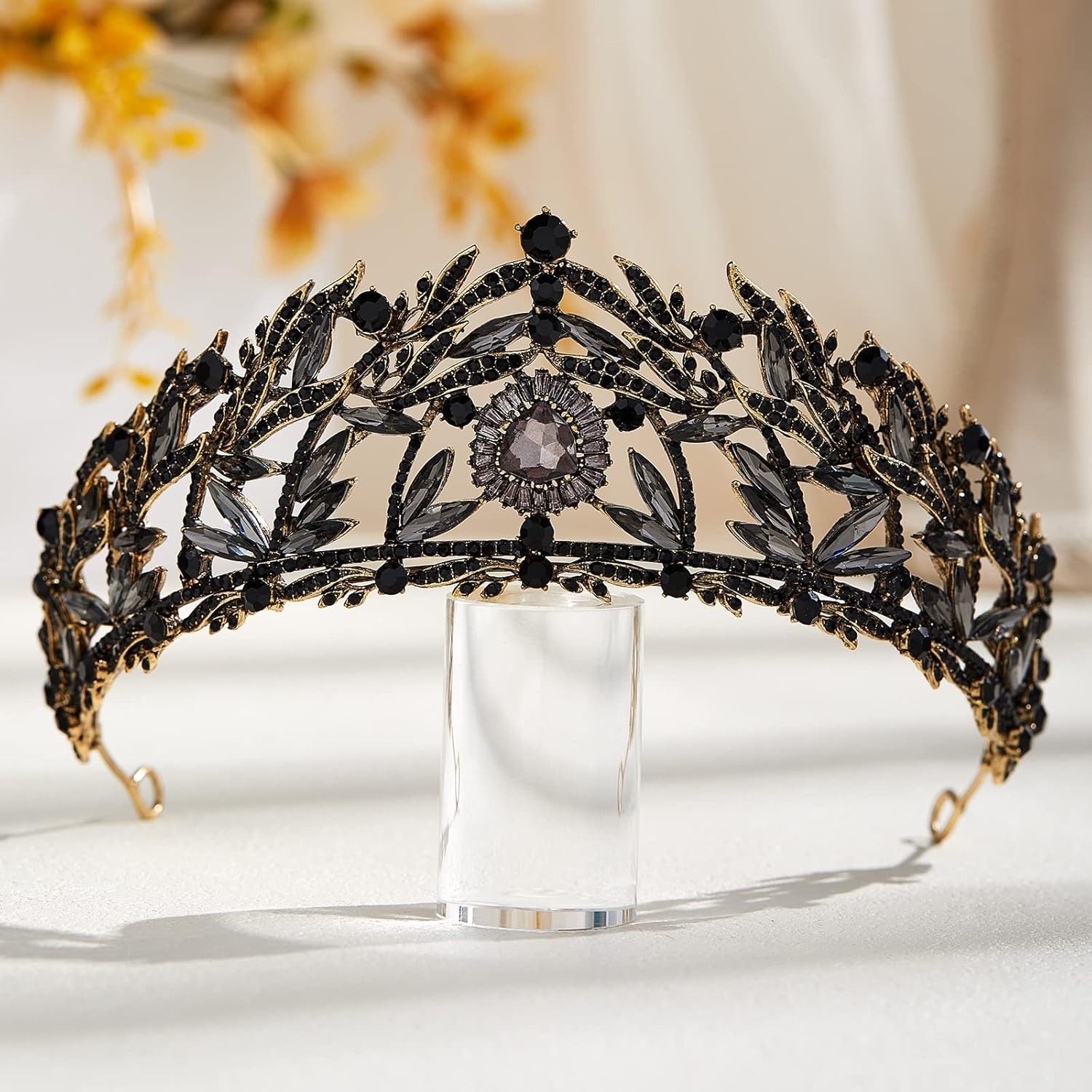 Black Baroque Queen Crown for Women, Gothic Crystal Tiara for Halloween Wedding