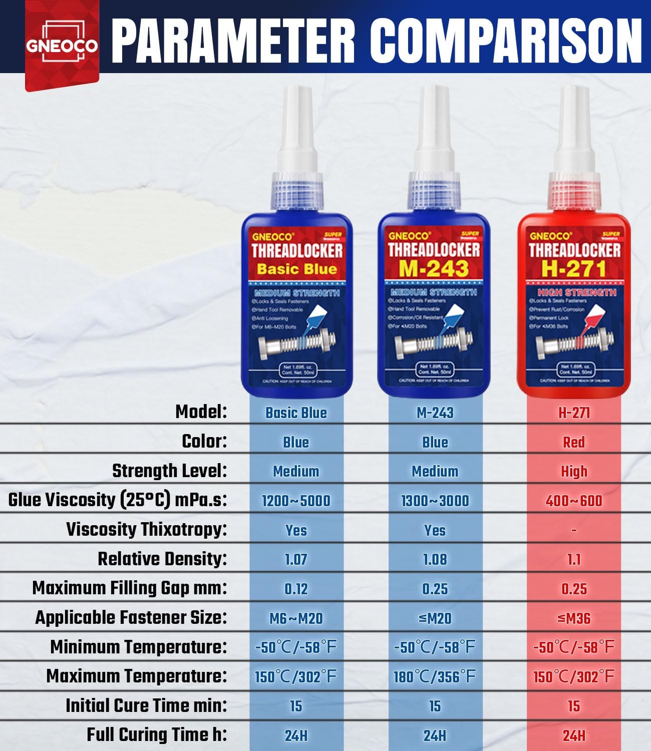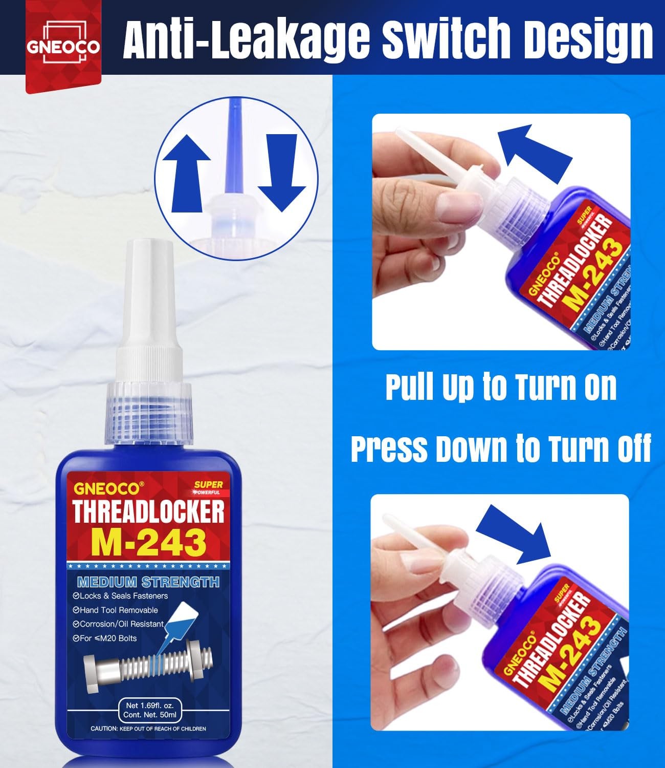 ThreadLocker Blue and Red Thread Lock Medium and High Strength Lock Tight for
