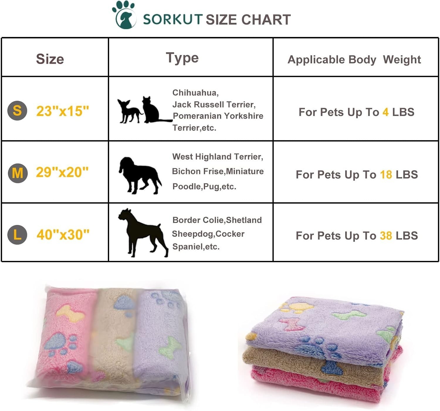Lightweight Pet Blanket Set, 3 Cute Bone Print Throws for Small Dogs Puppys