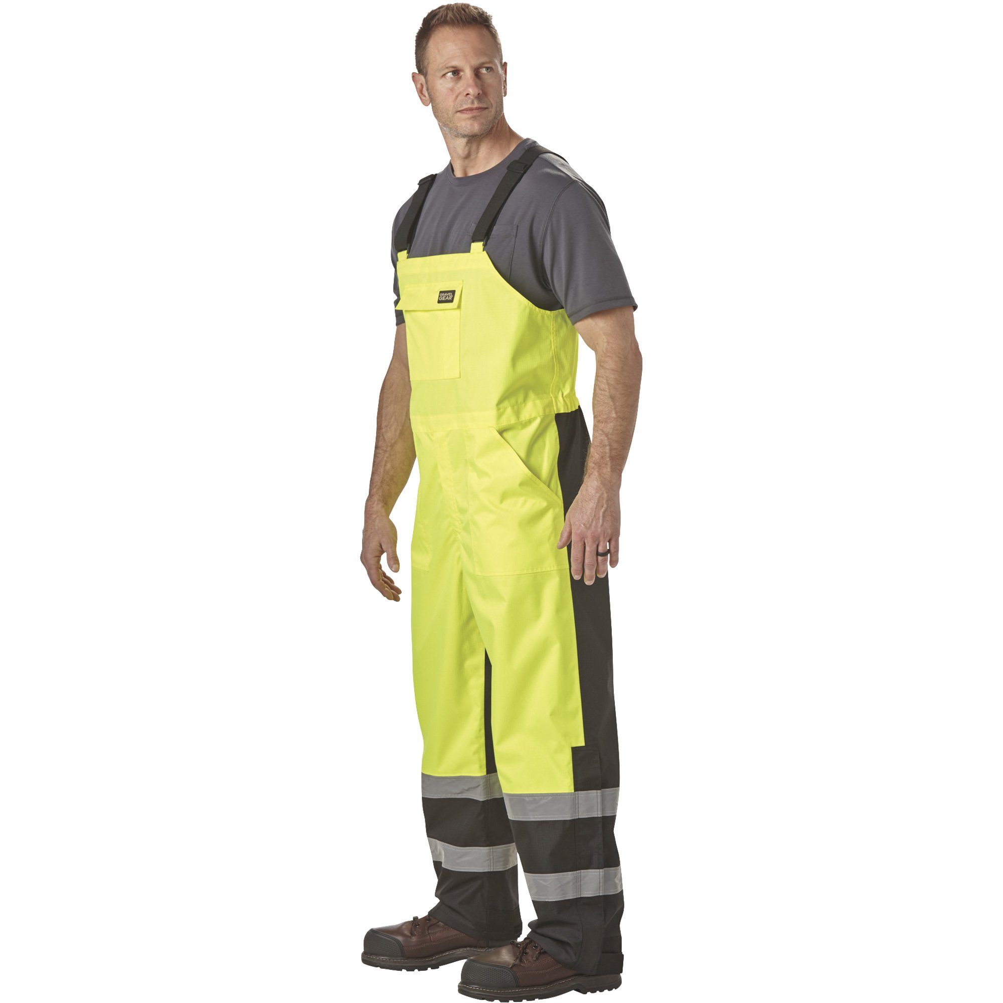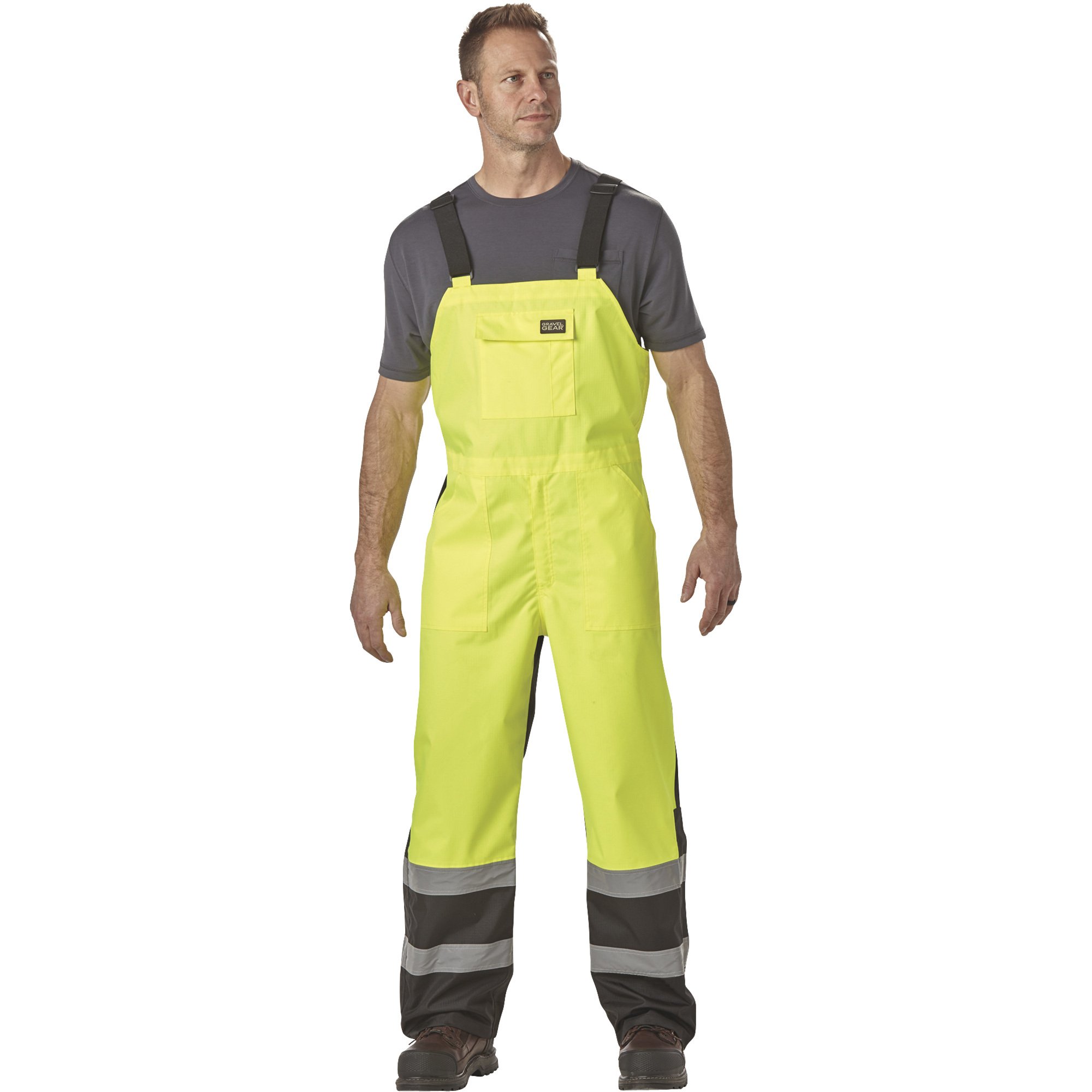 Gravel Gear HV Men's Class E High Visibility Rain Bibs with 2in.