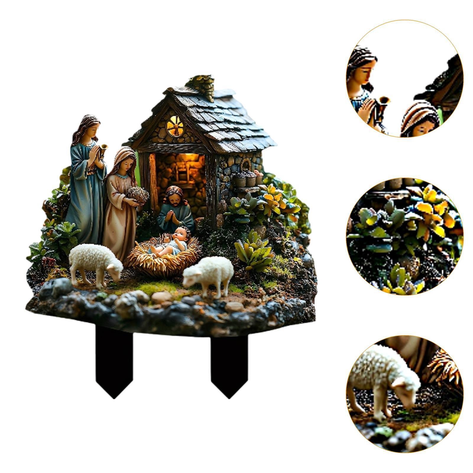 Nativity Scene Christmas Decoration Yard Sign Stakes Lawn Outside Landscape