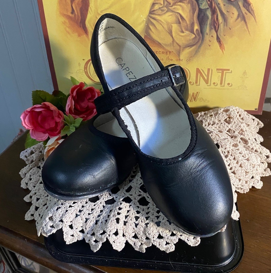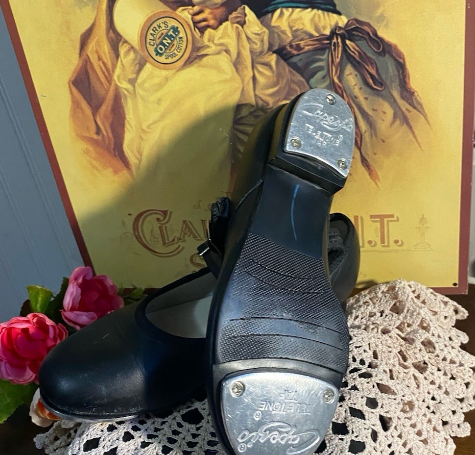 Capezio Tap Black Shoes Leather Teltone Preowned Girls Dance Size13.5