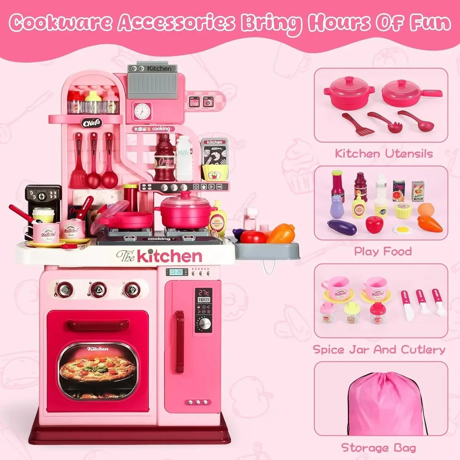 как выглядит Kids Kitchen Playset Kitchen Set for Toddlers 1-3 3-5, Cooking Stove, Play Sink фото